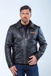 This model features a regular fit, suitable for all body types. It has a classic shirt collar and a front zip closure. Multiple zipped outer pockets add functionality and style. The high-quality finishes and premium sheepskin reflect the craftsmanship of Classic Legend Motors.