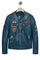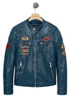 Ocean blue leather jacket with vintage racing patches - Image n°1