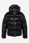 De COLUMBUS BLACK is een gewatteerd donsjack van zwart nylon, ontworpen om optimale bescherming te bieden tegen de kou. Dit sportkledingmodel heeft een capuchon en zakken met ritssluiting en valt op door zijn glanzende uiterlijk en het iconische logo op de mouw. De gezwollen snit voegt zeker een vleugje trend toe aan je wintergarderobe. Met een nylon voering, een binnenzak en twee buitenzakken combineert hij functionaliteit en stijl.
