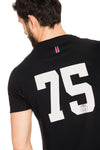 p>Zwart met ton-sur-ton PSG-logo op de borst en grote witte 75-flock op de achterkant.