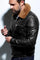 Aviator-style leather jacket with removable collar - Image n°4