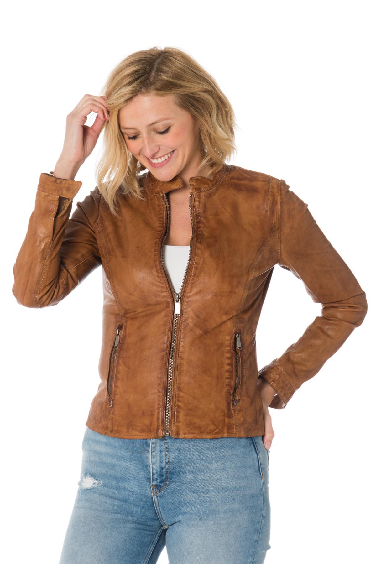 Breng een vleugje kleur in huis. je outfits met de CHANCE COGNAC. Schapsleer, soepel en licht en bodyvoering van stretch jersey en polyester mouwen, deze jas is zeer aangenaam om te...