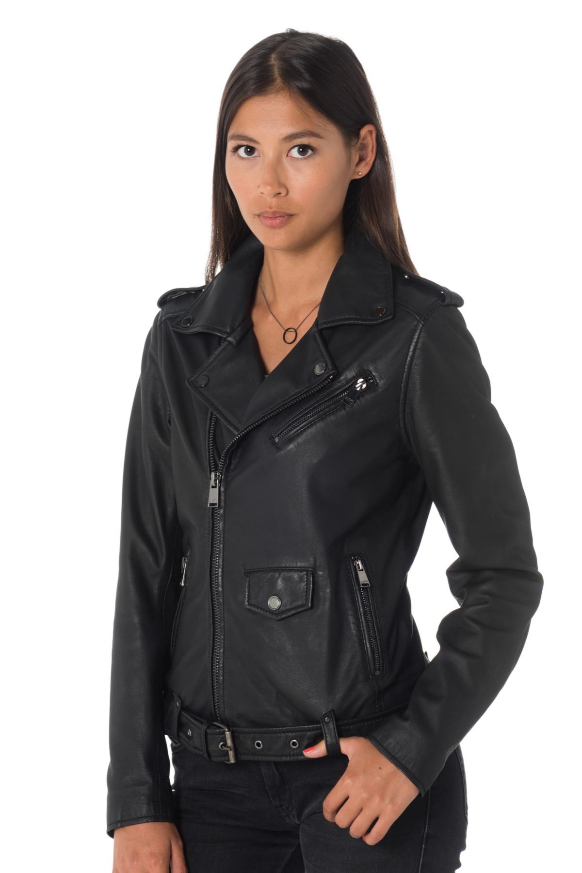 Cityzen women's black sheepskin leather perfecto - Image n°1