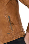 Zeer soepel schapenleer met verouderd effect en een voering van katoen en polyester met opschrift "Worldwide and Miami".