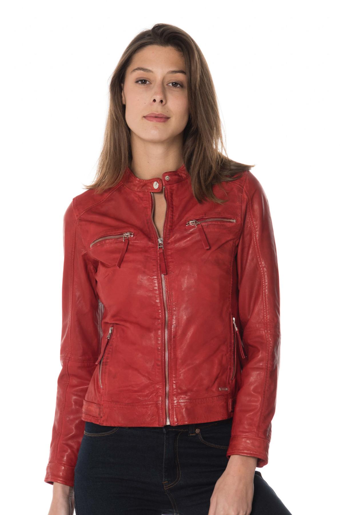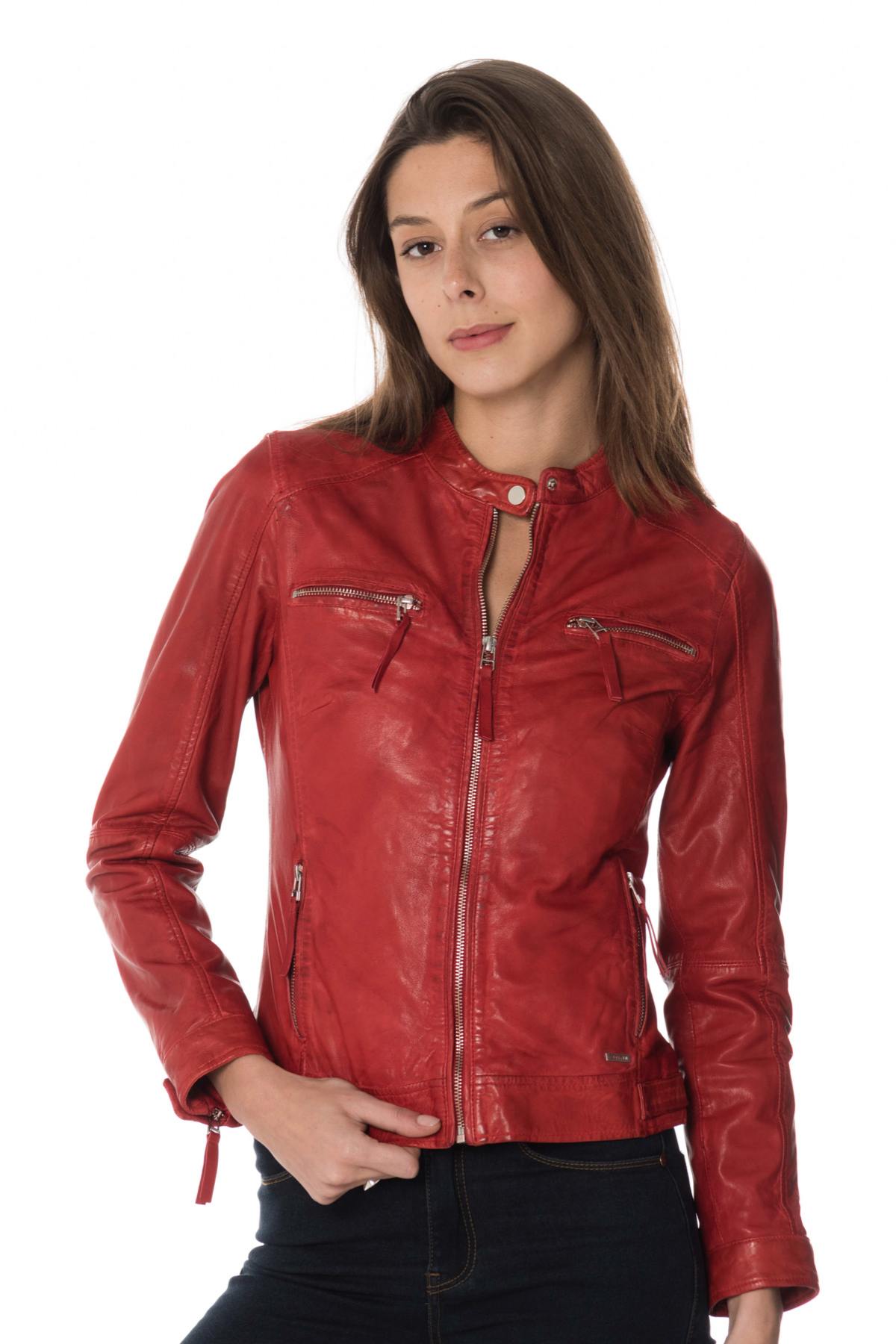 Women's red leather jacket - Image n°1