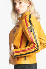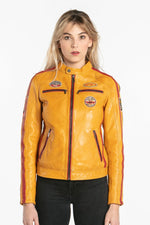 Trouw aan zijn motorsporttraditie presenteert het Daytona-label zijn OLIVERA SHEEP ATLAS SOLANO GEEL damesjack. Deze caféracer is ontworpen met een basis van gesneden schapenleer in een slimfit-snit.