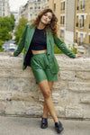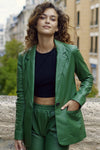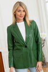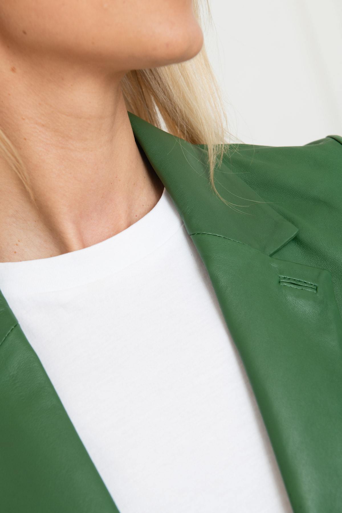 De MEG EMERAUDE 567 damesjas van het merk Oakwood is een blazer gemaakt van groen schapenleer. Het is een jas geschikt voor alle seizoenen. Het heeft een normale of rechte snit, geschikt voor alle lichaamstypes.