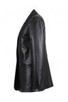 Gemaakt van glad, natuurlijk schapenleer. Deze zachte zwarte blazer valt op door zijn elegante kraag met inkeping en de centrale knoopsluiting die de taille subtiel accentueert. Het strakke ontwerp heeft opgestikte zakken aan de voorkant en wordt versterkt door een stijlvolle knoopsluiting bij de kraag en een zachte polyester voering voor optimaal comfort. De twee binnenzakken met ritssluiting combineren functionaliteit en stijl, terwijl de zijzakken met paspel de praktische en trendy uitstraling compleet maken. Dit tijdloze model is voorzien van een verfijnde glans die het een uniek karakter geeft, perfect om naar je werk te gaan of voor een avondje uit.