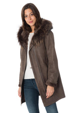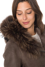 Deze jas van lamsnappa-lamsleer van lamsvacht is een perfecte keuze. Het heeft een capuchon versierd met subliem wasbeerbont.
