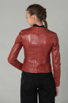 Deze ETHEL LAMB RUBY ROSE WOOD damesjas van het merk ROSE GARDEN is zeer vrouwelijk met zijn slanke pasvorm en zal u dames zeker verleiden. De rode kleur is vervaardigd uit lamsleer en zal je kledingstijl verbazen.