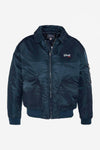 Dit tijdloze bomberjack is gemaakt van gerecycled nylon en zorgt voor zowel lichtheid als duurzaamheid. Het beschikt over een ritssluiting aan de voorkant, twee cargozakken aan de voorkant en twee binnenzakken voor extra gemak. De gebreide tailleband en manchetten zorgen voor een perfecte pasvorm en goede bescherming tegen de kou. De marineblauwe tint maakt het een veelzijdig kledingstuk, ideaal om elke casual outfit compleet te maken.