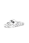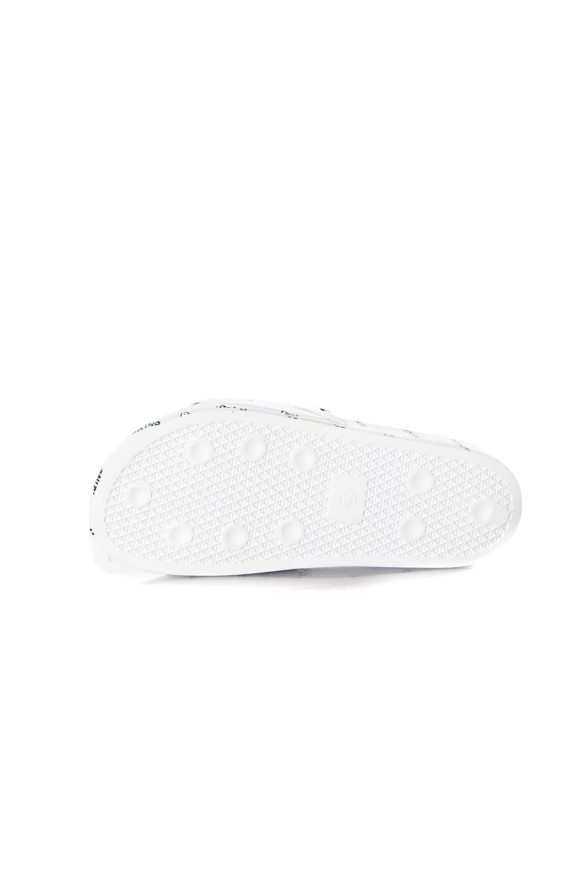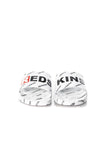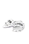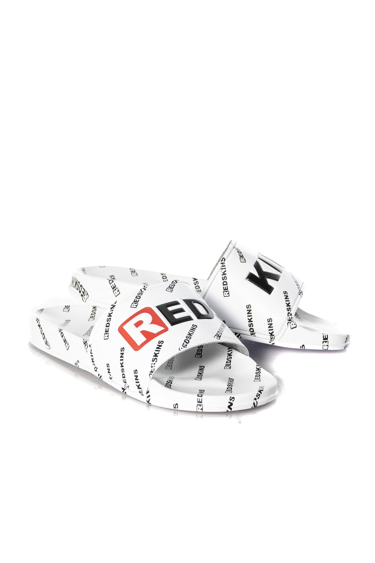 Hier hebben we het over trendy sandalen, voorzien van een riempje met verstelbare bandjes. gewatteerde voering. Ze hebben een open neus en een platte hak. aandoen. Bovendien is het heel prettig om mee te werken. slijtage, de zool zorgt voor stabiliteit. uitzonderlijk. Maar ze zijn niet alleen nuttig. Hun hoogwaardige ontwerp is terug te zien in de uitgebreide afwerkingen. Het witte oppervlak van dit model is overal geflockt met het Franse merk, met een perfect versterkt contrast. met zwarte letters. Op de voorkant staat het logo in gigantische inscriptie met de kenmerkende « REDS » op de ene voet en « SKINS » op de andere.