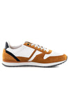 De NIXORI ORANGE WHITE NAVY heren canvas sneakers van het merk Redskins zijn gemaakt van oranjekleurig textiel.