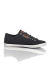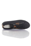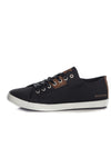 Bovenwerk van zwart canvas met kleine bruine accenten aan de oogjes en hiel.