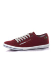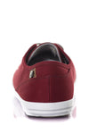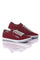 Ontdek een bovenwerk van rood canvas, een leren binnenzool en een witte elastomeer buitenzool.