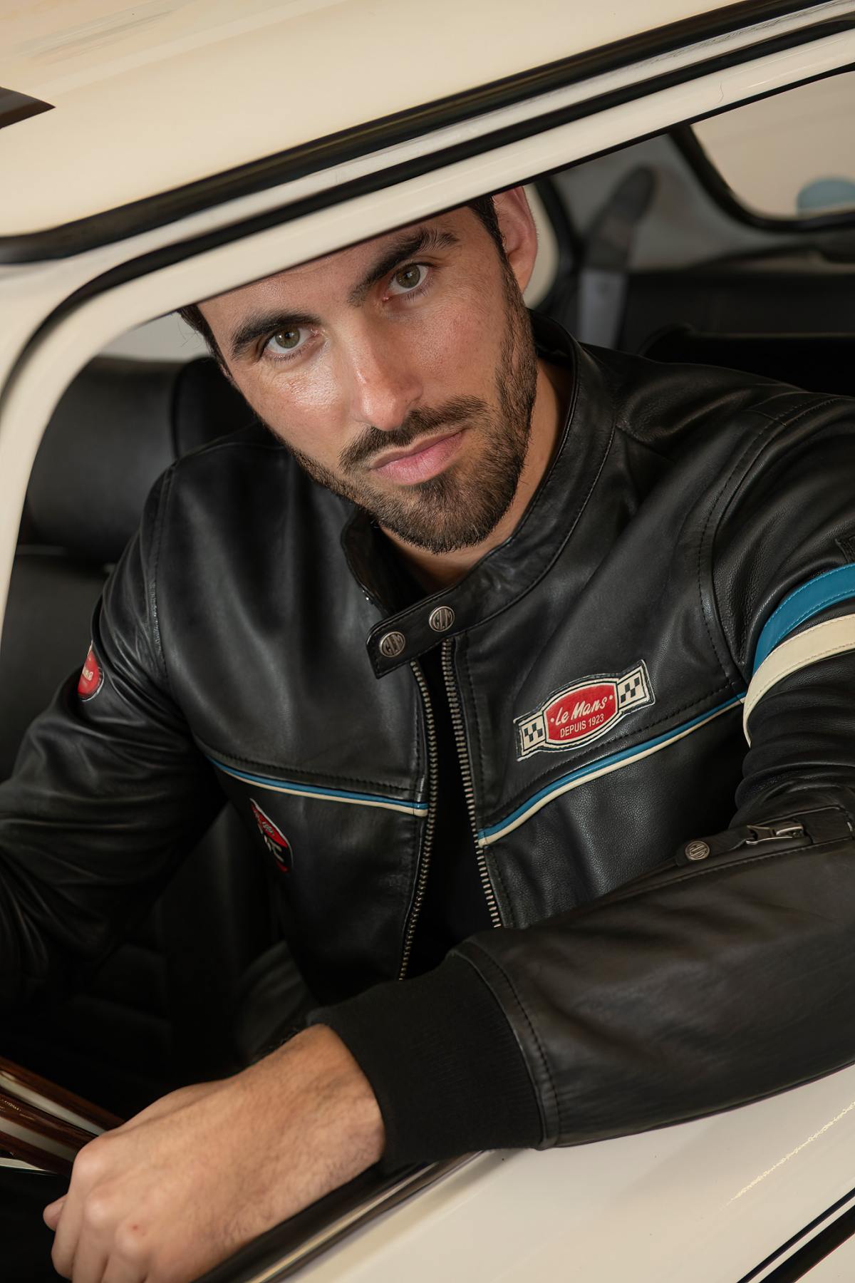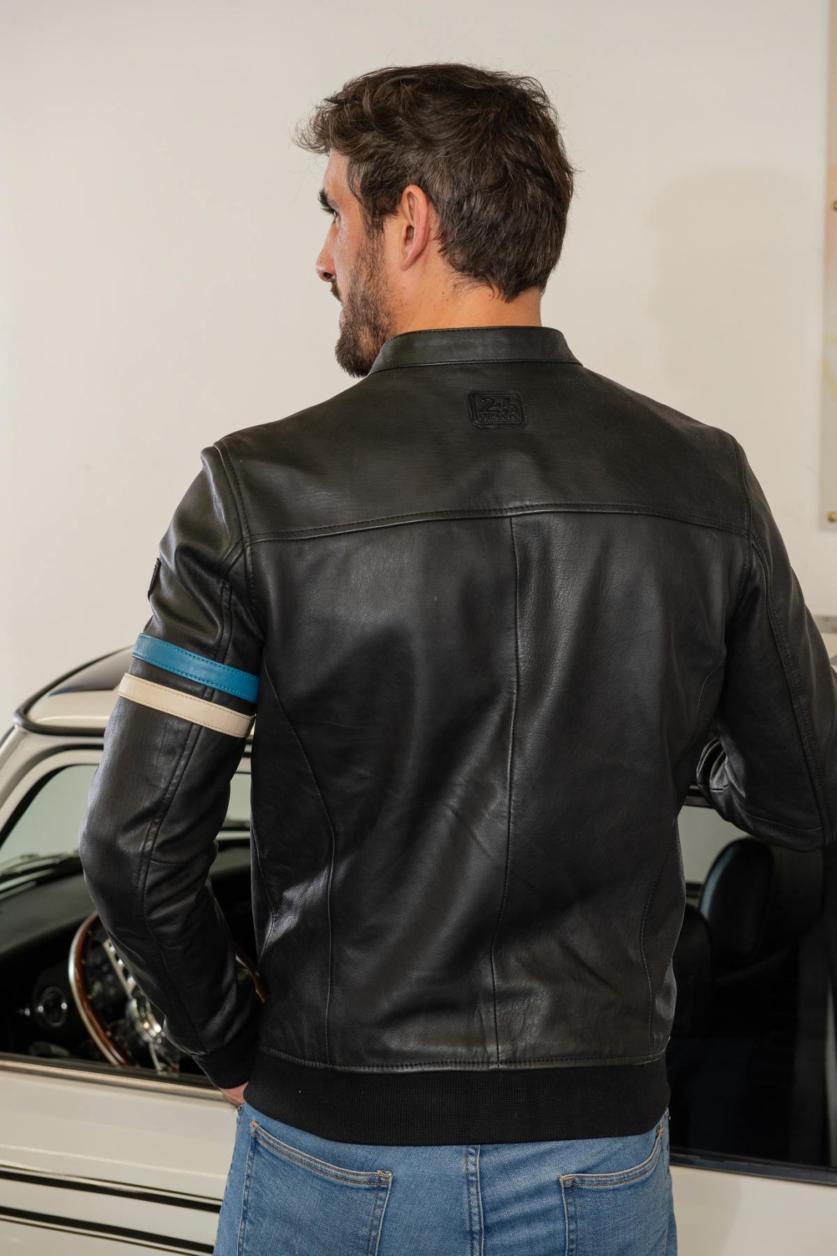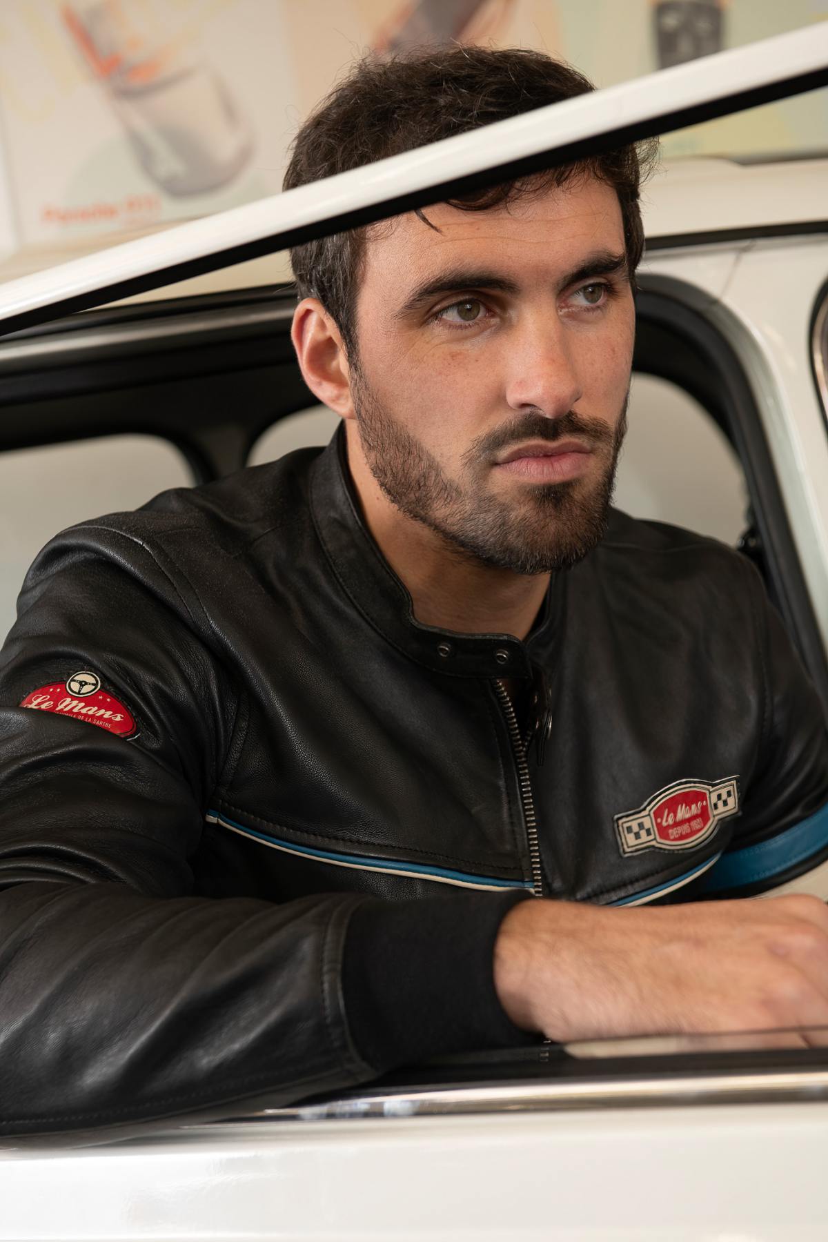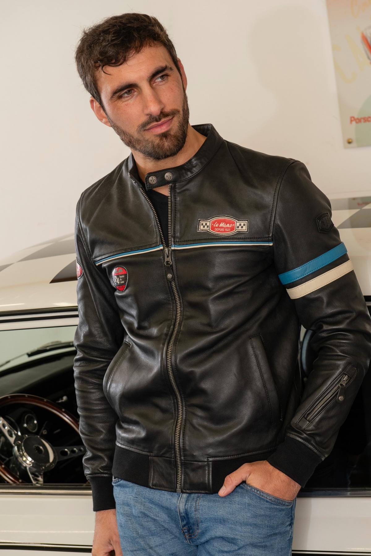 Jas van het merk Le Mans. Deze schapenvacht is een officieel product, herkenbaar aan de patches op de borst en mouw. De ribbels aan de taille en mouwen zijn typerend...