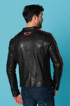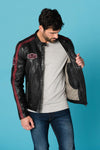 Prachtig leren jack van schapenvacht met bikerkraag van het merkCITYZEN: de VOLLEDIGE SPEED BLACK/OXBLOOD.