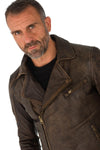 Het LEO BROWN perfecto jack heeft door zijn verouderde uitstraling een zeer trendy vintage look.