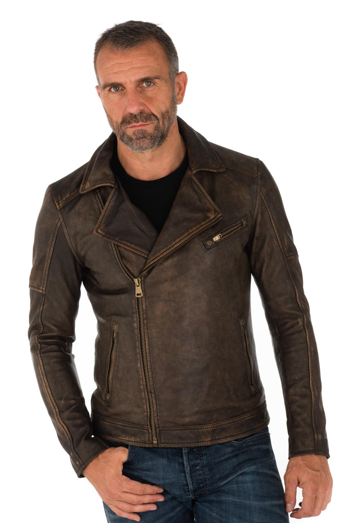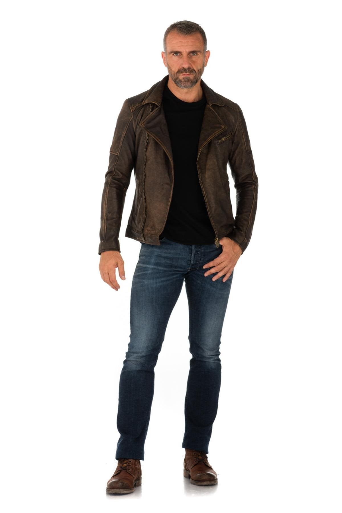 Het LEO BROWN perfecto jack heeft door zijn verouderde uitstraling een zeer trendy vintage look. Schapenleer en voering van katoen en polyester. 3 zakken met ritssluiting aan de voorkant en...