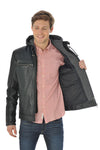 Buffelleer en polyester binnenkant, deze jas is comfortabel.