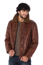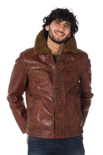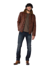 Daytona men's aged cognac cowhide leather jacket - Image n°1