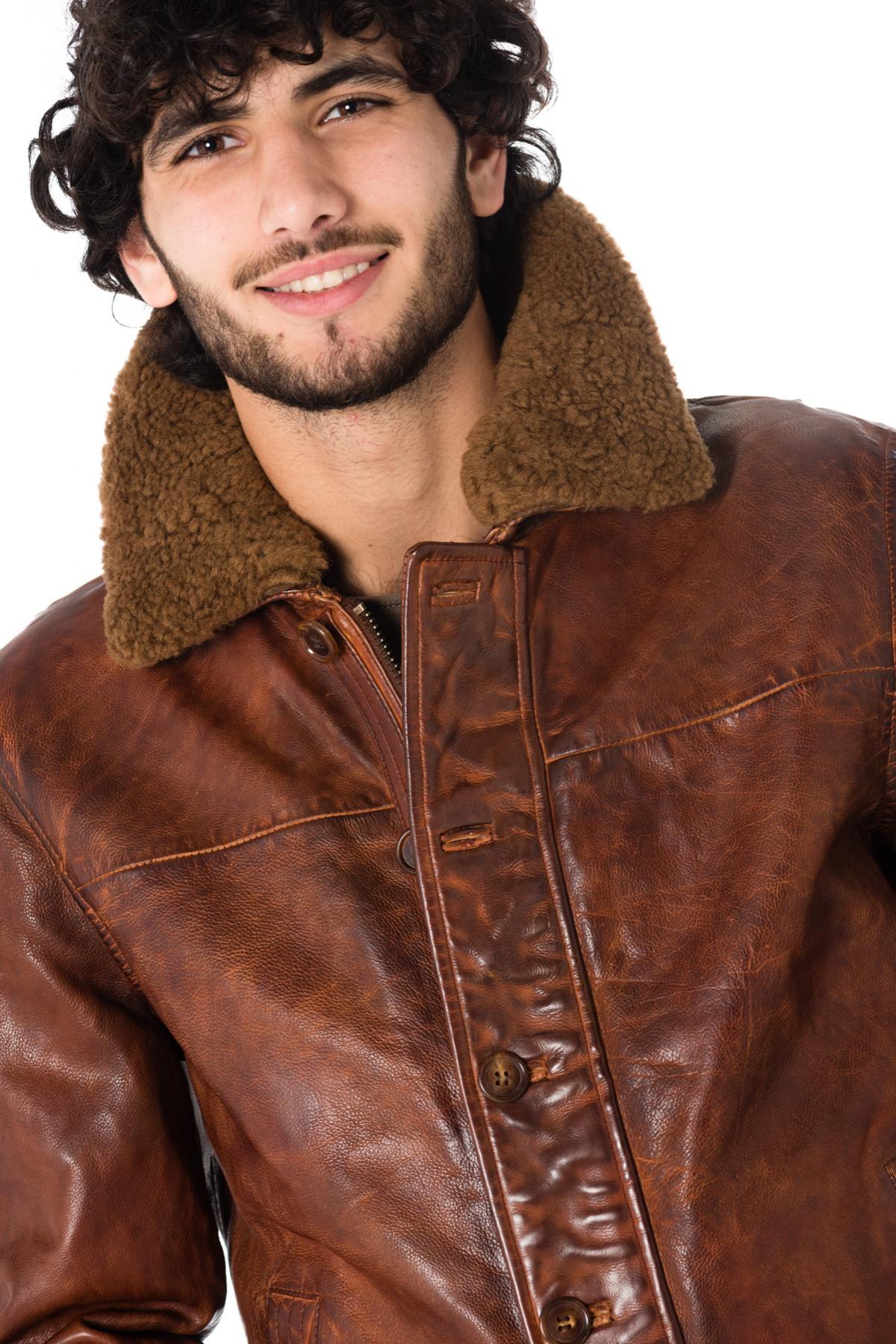Daytona men's aged cognac cowhide leather jacket - Image n°5