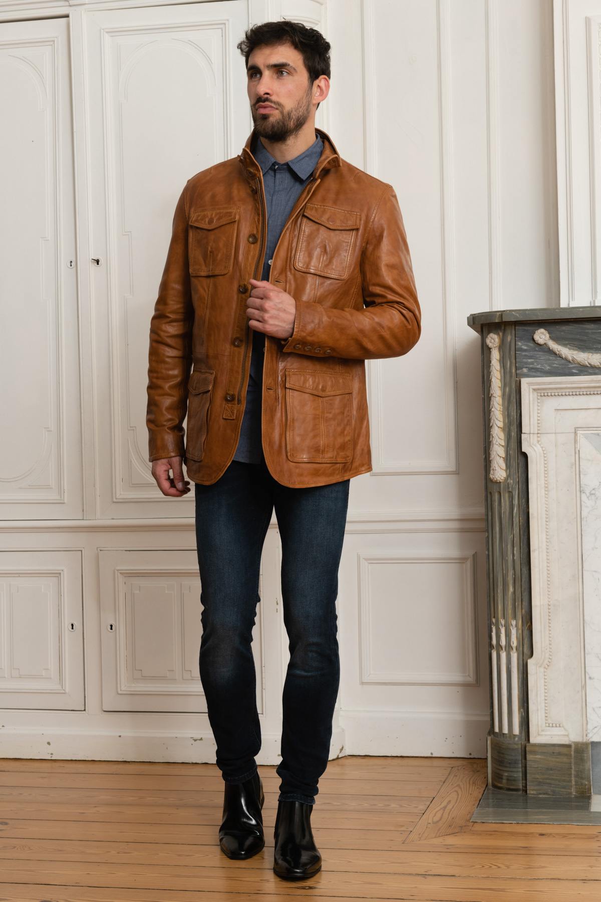 Elegant cognac lambskin leather jacket - Image n°4