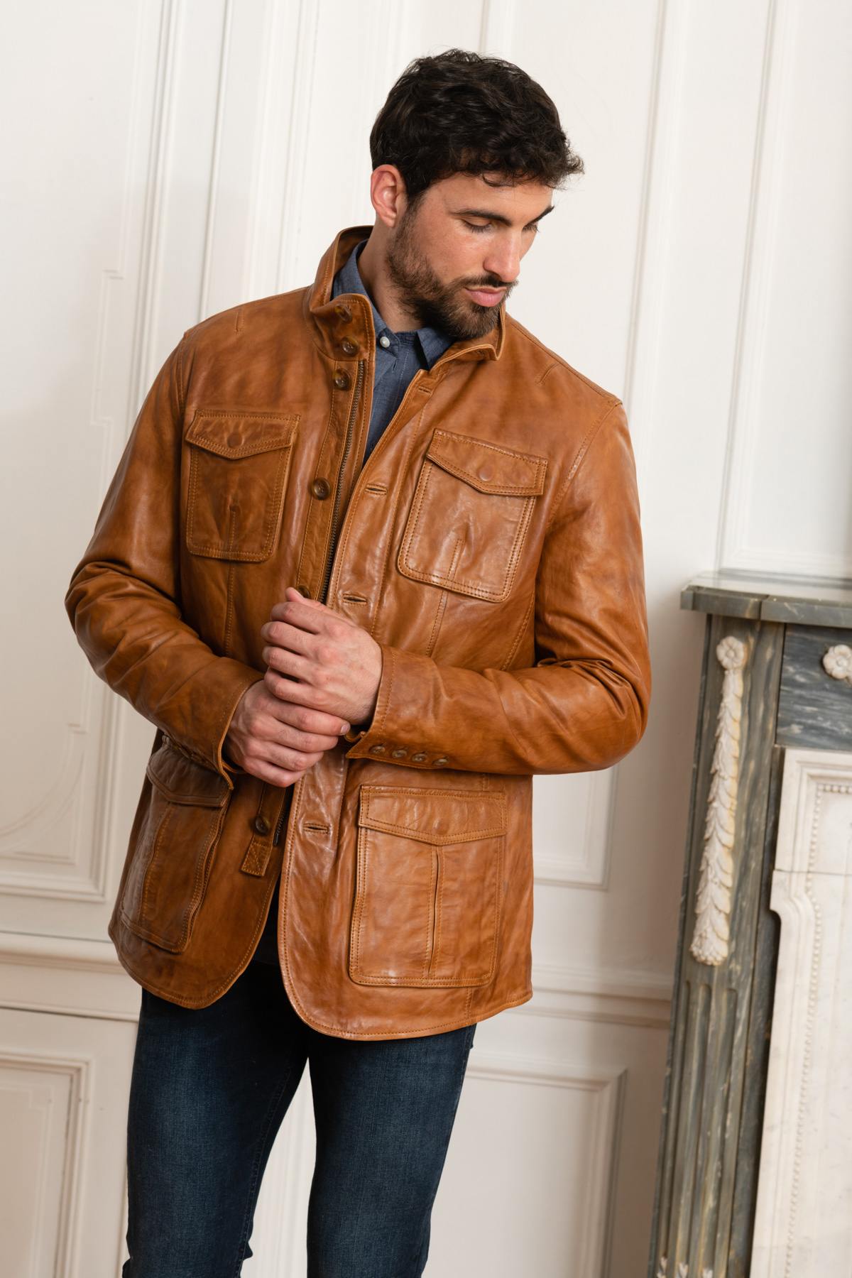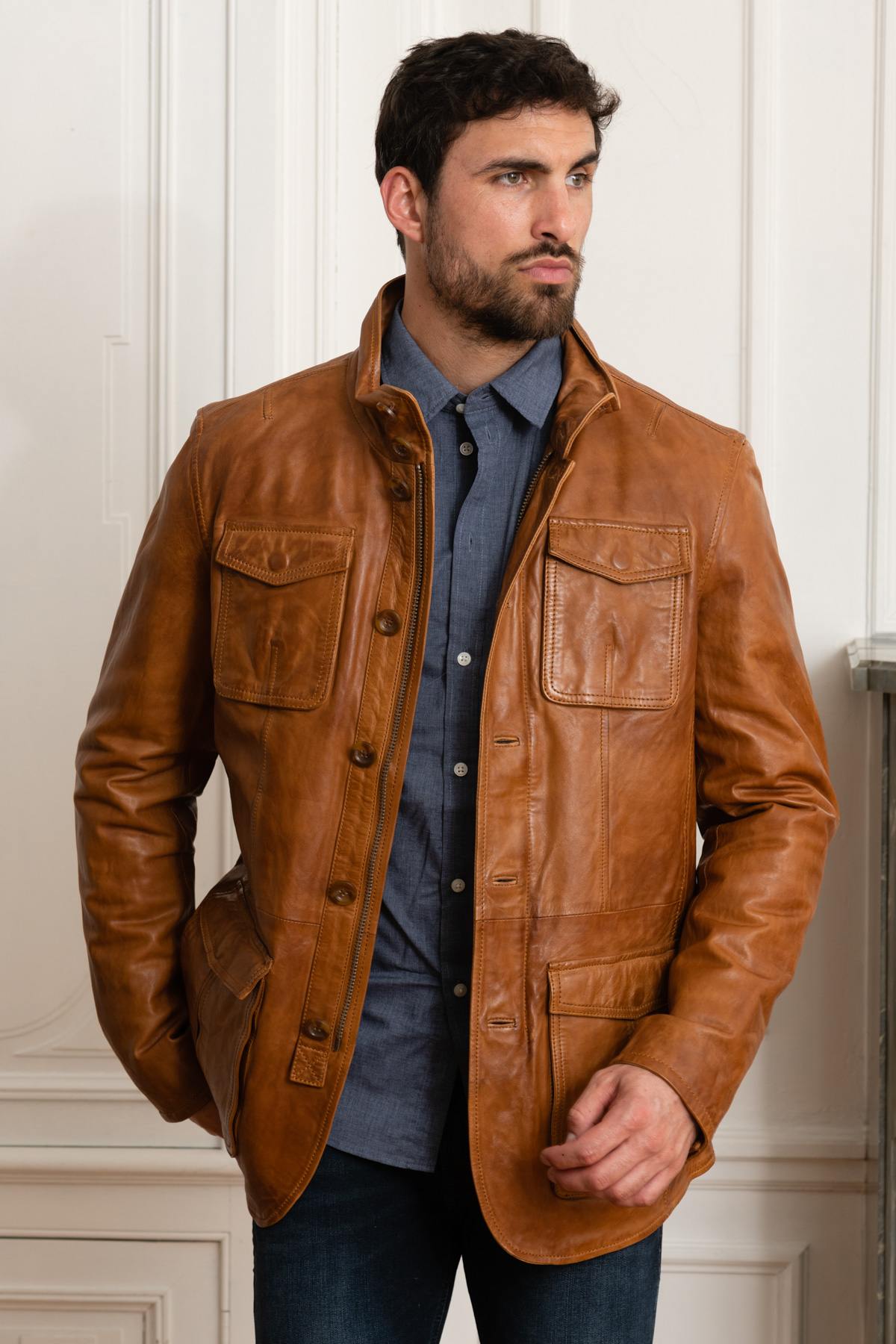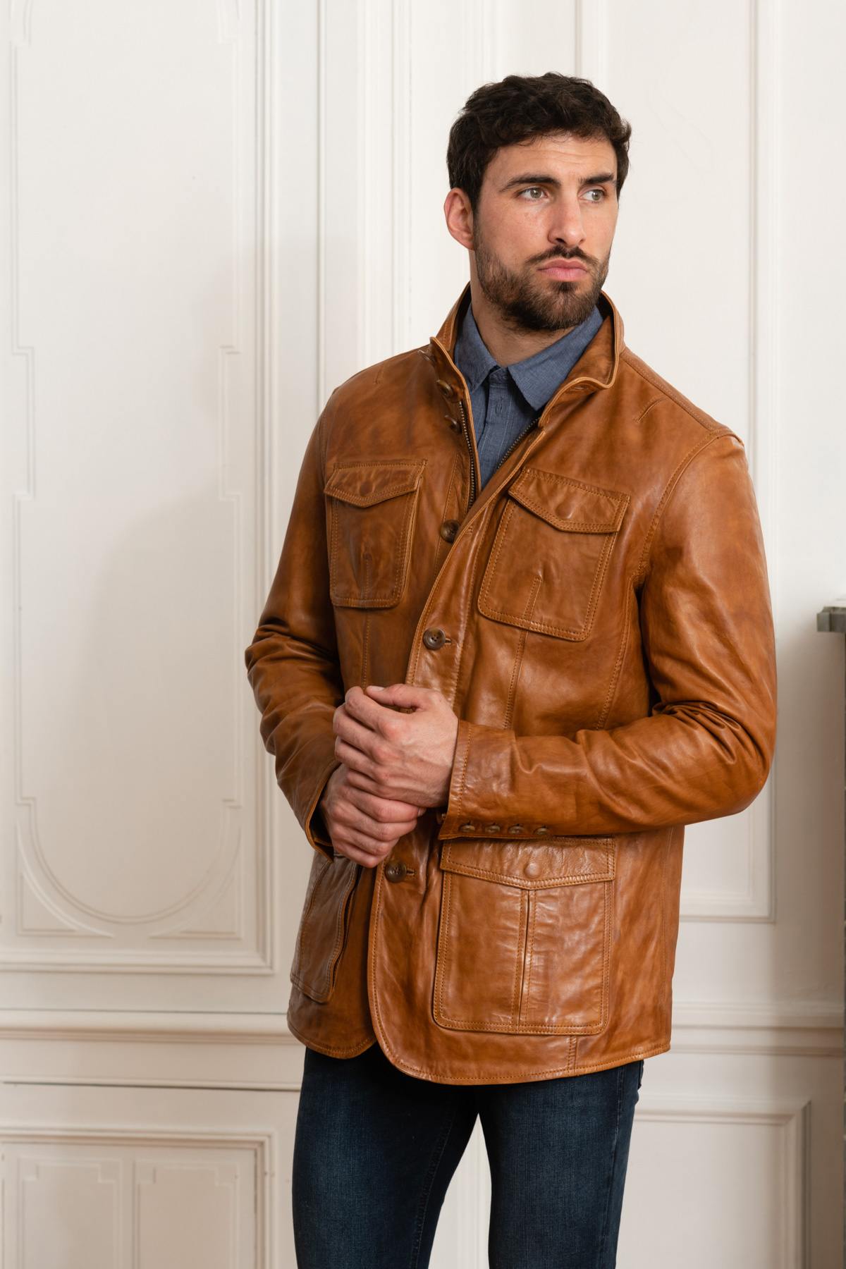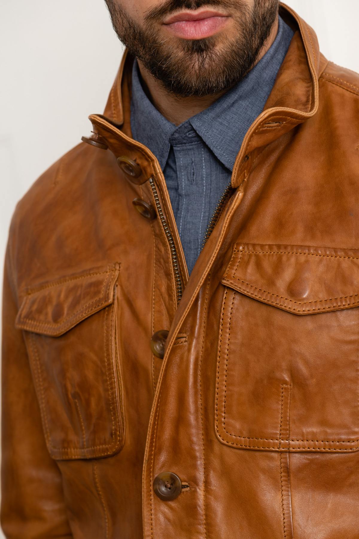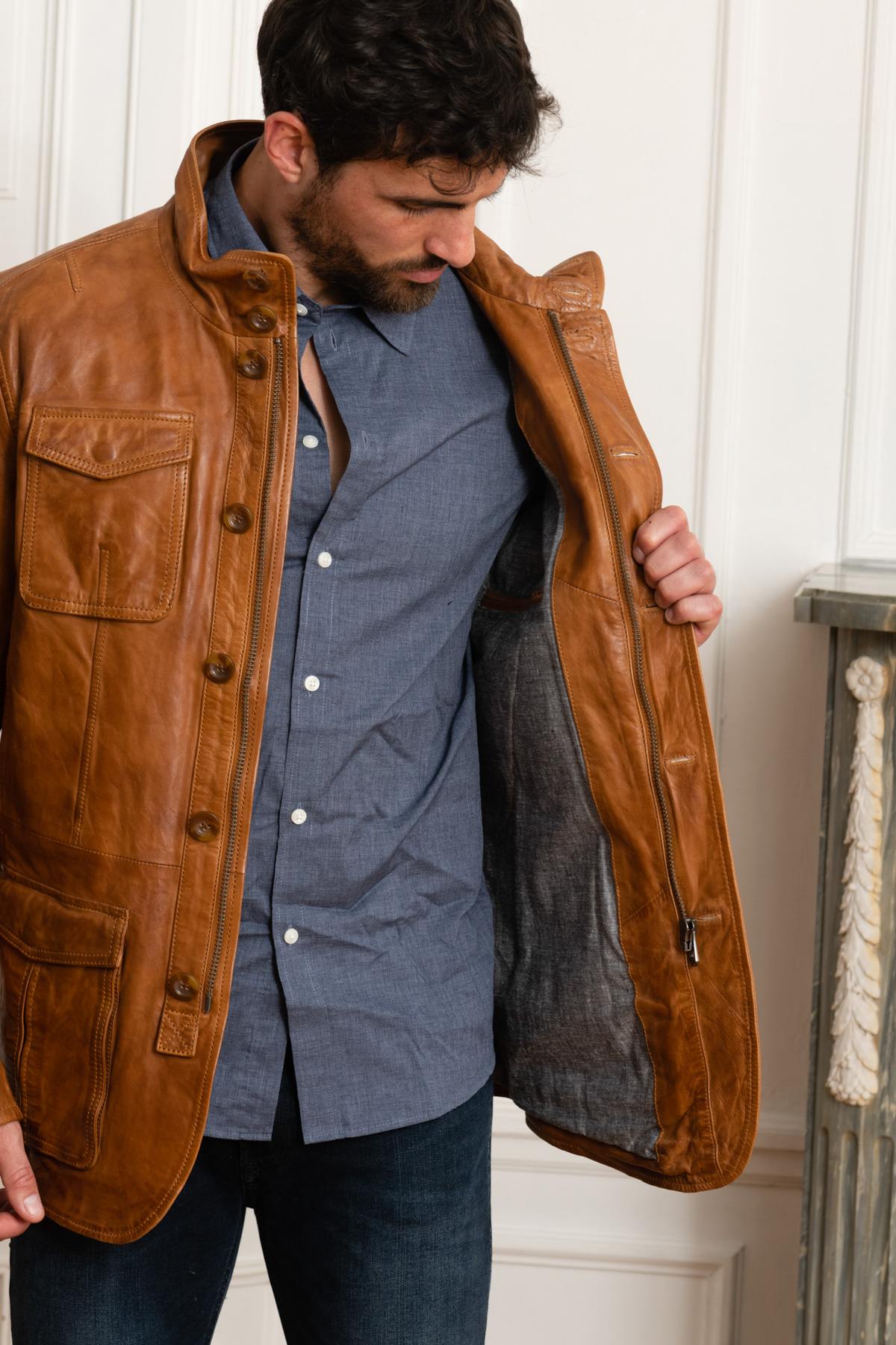 Elegant cognac lambskin leather jacket - Image n°5