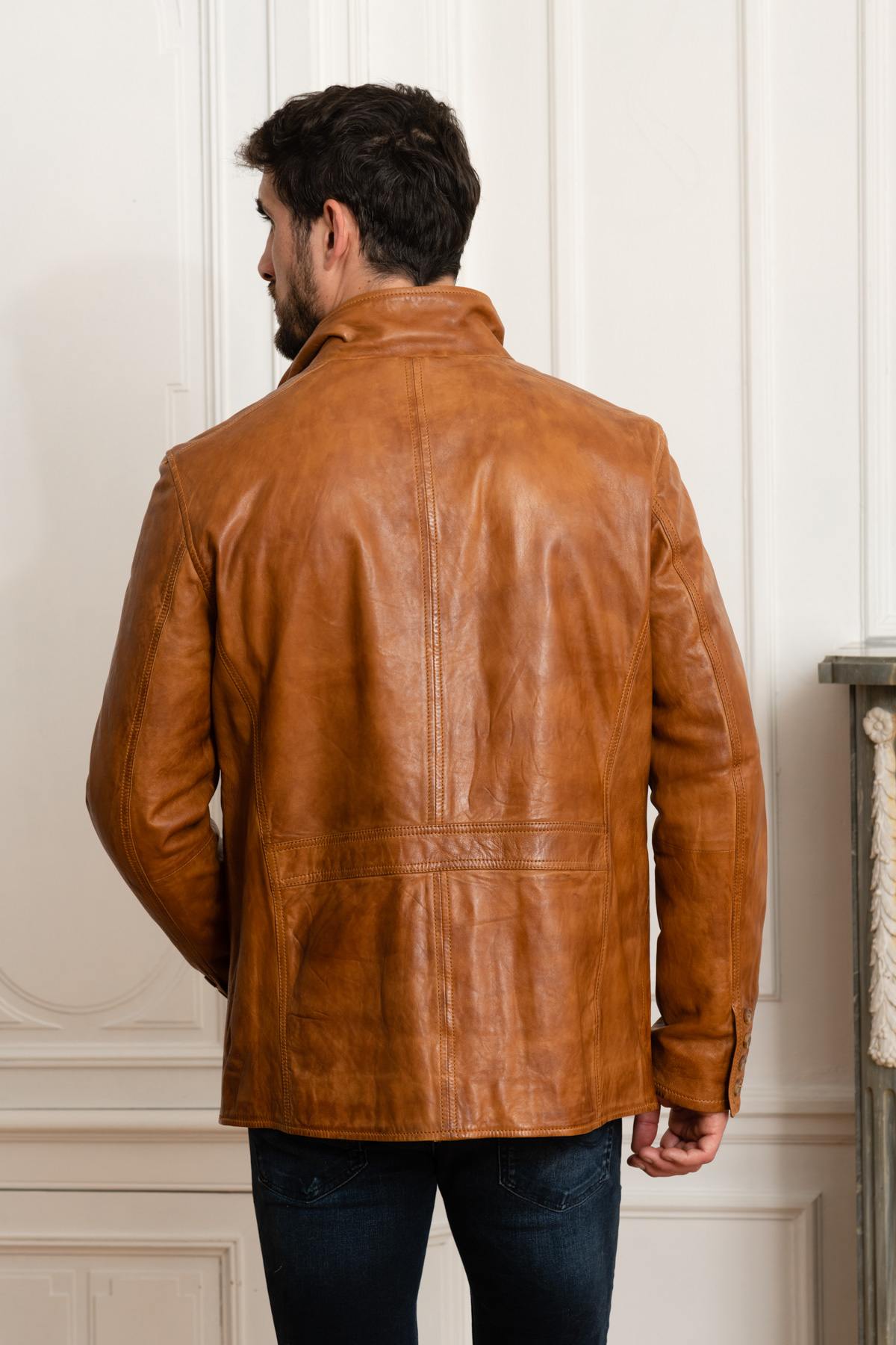 Elegant cognac lambskin leather jacket - Image n°6