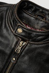 De DAYTONA 224 is gemaakt van volnerf Accelerust buffelleer en valt op door zijn unieke patinapotentieel, waardoor na verloop van tijd een kenmerkende cognacbruine kern zichtbaar wordt. Elke jas evolueert anders en vertelt een verhaal dat gevormd wordt door de ervaringen van de drager.