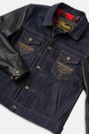 Ontdek het IRONHORSE jack van Master Supply Co., een iconisch herenstuk dat leer en denim op elegante wijze combineert. Geïnspireerd door de vintage stijl van Amerikaanse motorrijders, belichaamt dit overhemdkraagmodel een tijdloze en stoere stijl.