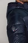 Dit jack met gewatteerd effect sluit met een axiale metalen ritssluiting. Het heeft een grote, gelijkmatig gewatteerde capuchon met een elastisch trekkoord. Aan de zijkant Op de linkerborst is een militaire zak bevestigd, versierd met een driekleurig label. Een gedrukte patch “Parouille de France” met een driekleurige vlag en vliegtuigen is geflockt; op de linkerarm. Ook de voering is voorzien van een label met dezelfde inscriptie.