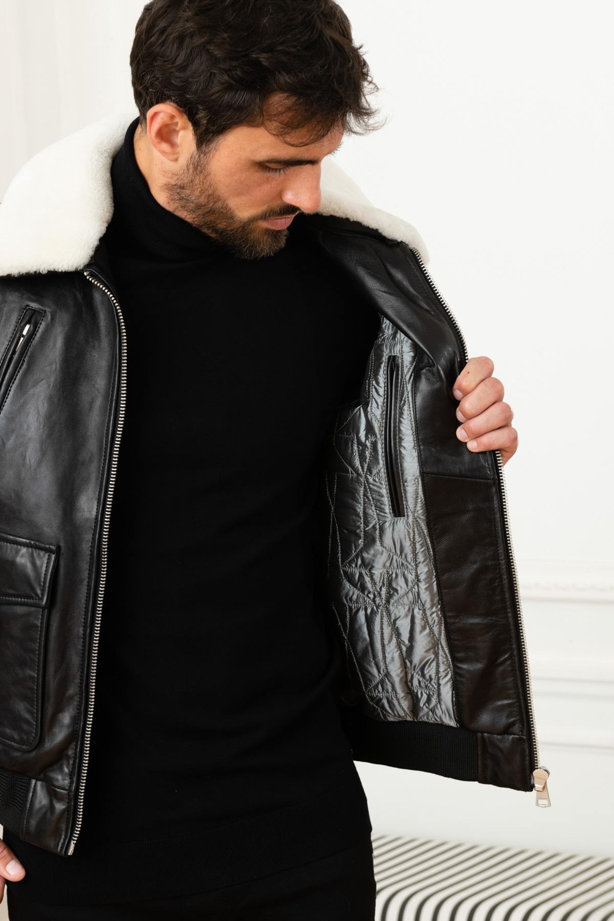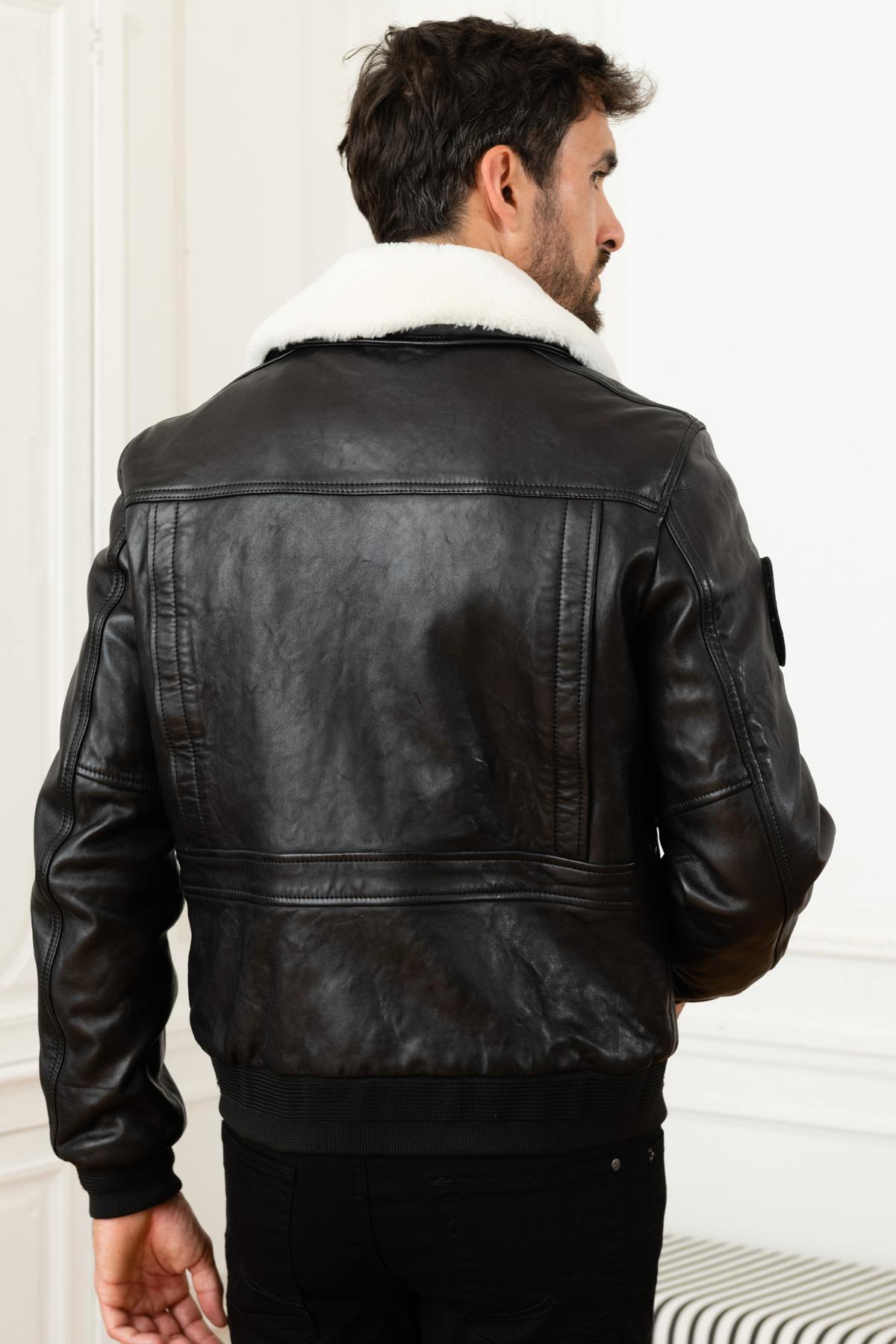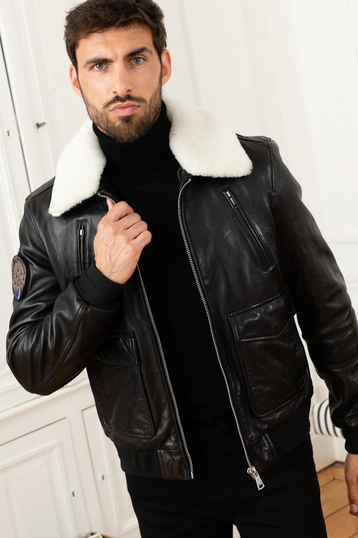 Dit is een leren jack van schapenvacht waarvan de hoogwaardige afwerking je een fijne, zachte en lichte huid laat waarderen. Wij houden van de pilotenstijl met zijn rijke en trendy design, versterkt door een subtiele plooi en een prachtige patina. De kraag is gemaakt van echt bont, terwijl de manchetten en taille bescherming bieden met een duurzaam geribd breisel. Er zijn twee schuine borstzakken voorzien. Ze hebben lage zakken in de taille. flappen, zelf geassocieerd met handzakken met paspel aan de zijkanten. De zilveren voering is gewatteerd om de beschermende prestaties te verbeteren en uitzonderlijk comfort te garanderen gedurende de winter.