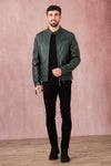 Forest green leather jacket with biker collar - Image n°1
