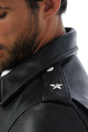 Deze perfecto is versierd met prachtige sterren op de schoudervullingen, zoals het jasje van Marlon Brando in "The Wild Team".