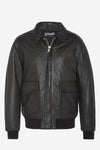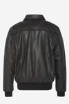 Brown leather bomber jacket with shirt collar - Image n°1