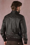 Brown leather bomber jacket with shirt collar - Image n°3