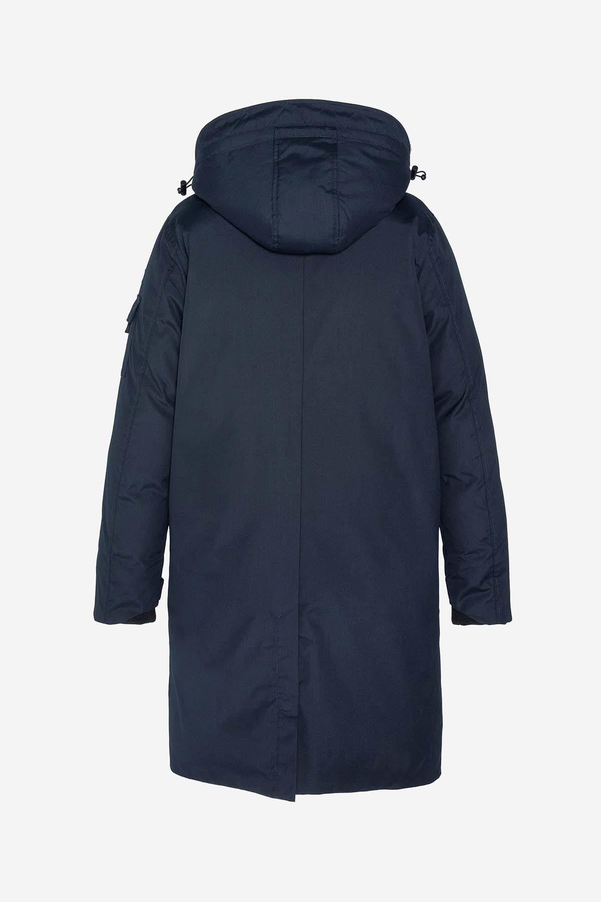 Long navy blue hooded parka - Image n°2