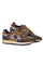 Het bovenwerk en de verstevigingen van deze schoen combineren mooi kaki en marineblauwe kleuren. Het merklogo is verguld. aan de externe zijde en ter hoogte van de steunbeer. De oranje veters passen bij de schoen. de dunne gevlokte streep op de witte tussenzool. De buitenzool is zwart en antislip.