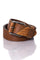 Cognac rundleer, dit model eindigt met een lichter juk met gegraveerd merklogo.