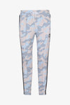 De elastische tailleband is versterkt met een trekkoord, terwijl het beige oppervlak bedekt is met een bloemenprint. allemaal erg cool. Je kunt de naam van het merk daar zien verschijnen. op de vlekken gemaakt çà en daar, terwijl het medaillon met het merk erop is geplateerd. op het linkerbeen.