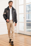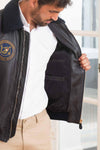 De PN933PL147 BLU herenjas van het merk Aeronautica Militare is een bomberjack gemaakt van donkerblauw schapenleer. Het is een jas geschikt voor herfst en winter. Het heeft een normale of rechte snit, geschikt voor alle lichaamstypes.