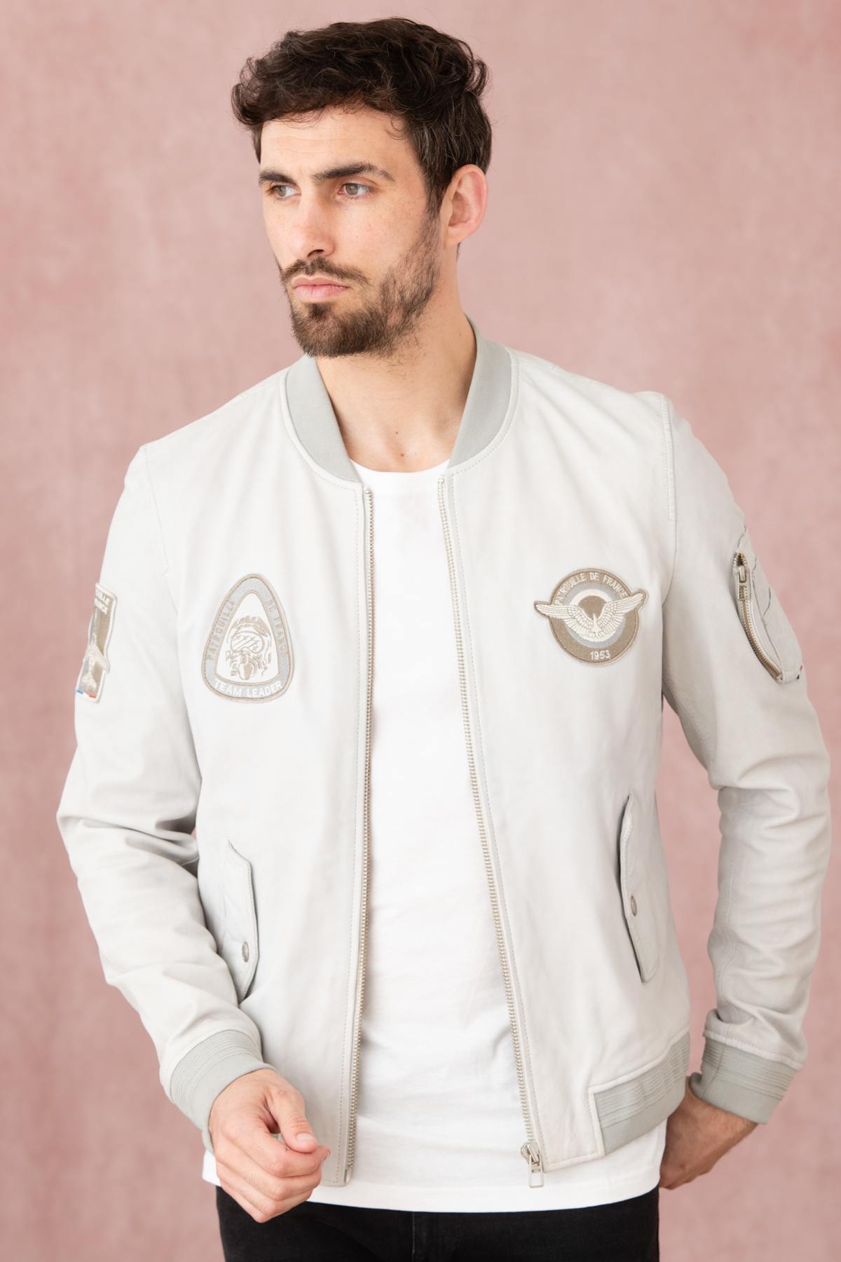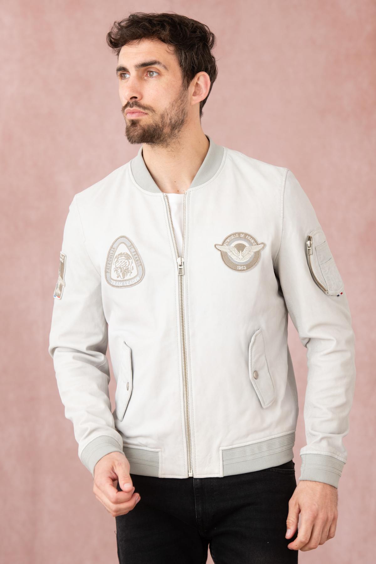 Light gray leather jacket with gray patches - Image n°1