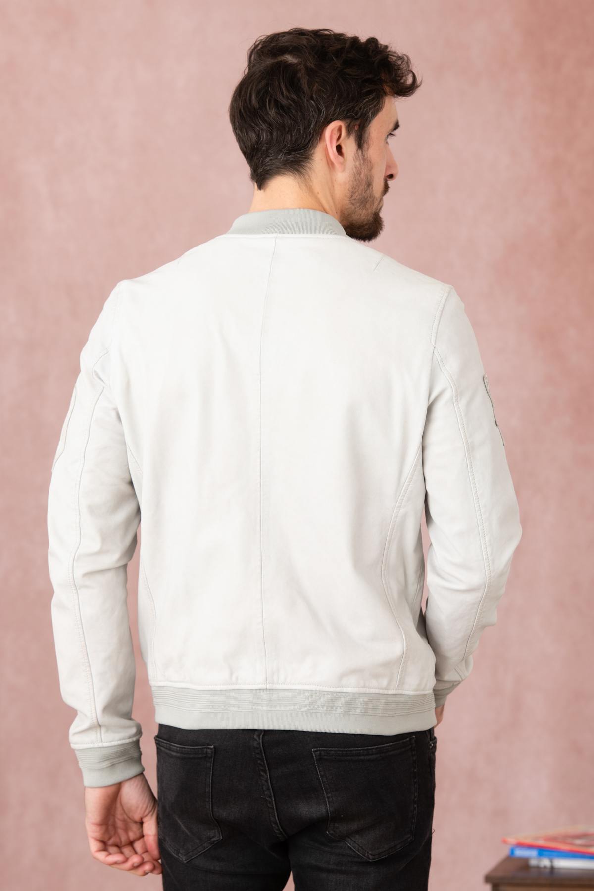 Light gray leather jacket with gray patches - Image n°8