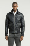 Dit bomberjack is zwart van kleur en heeft oorspronkelijk een hoge versterkte kraag; door een elastische ribband, vergelijkbaar met die aan de uiteinden van de lange mouwen en de taille. Een lange axiale metalen ritssluiting sluit en opent deze jas. Aan elke kant zijn twee verticale raglanzakken genaaid.