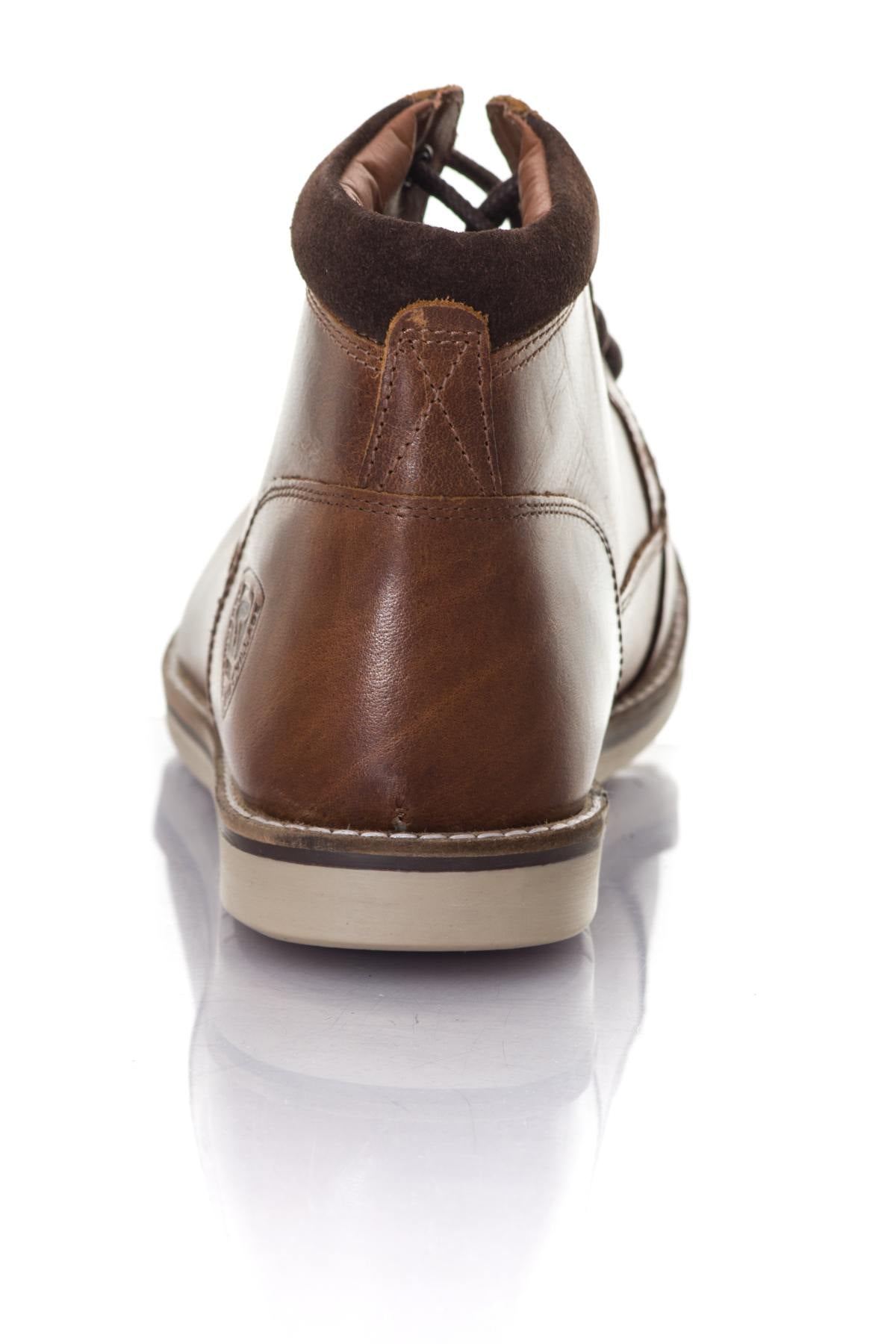 Bovenwerk van bruin rundleer, dit model heeft een leren binnenzool, een stoffen voering en een buitenzool. ;bovenwerk van elastomeer.