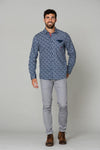 Het sluit met zwarte knopen met marineblauwe omtrek, passend bij het overhemd. shirt. Dankzij de normale pasvorm ziet u er geweldig uit. Eén raglanzak met klep met knoop; wordt op de linkerborst geplaatst. De lange mouwen sluiten ook met twee genaaide knopen om aan te passen aan je polsmaat.