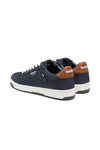 Made from durable textile, these sneakers feature a dominant navy blue with cognac accents on the heel and eyelets. The lightweight white sole provides solid cushioning, while the textile lining offers long-lasting comfort. The Redskins logo appears discreetly on the outer side and tongue, adding a subtle signature touch. Flat tone-on-tone laces complete the clean look.