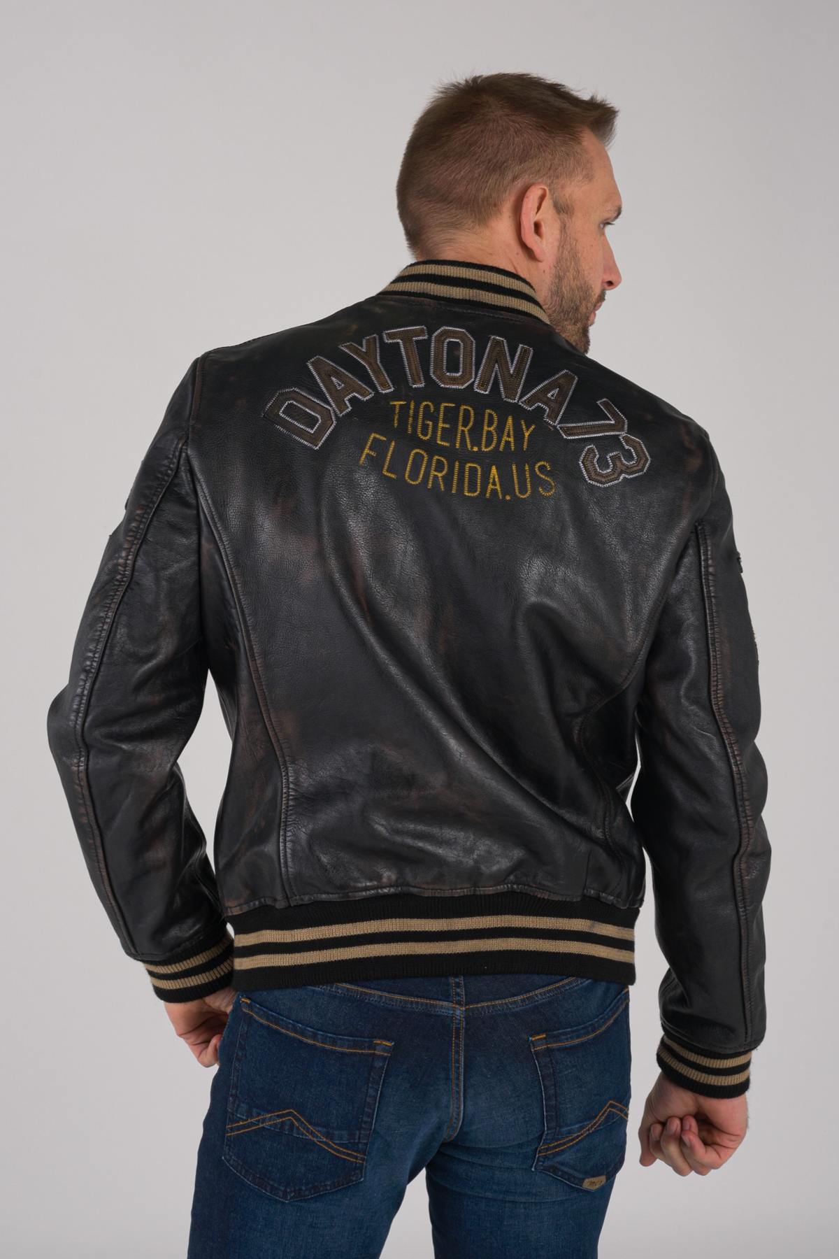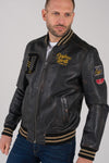 Men's Jacket Daytona BOMBER BADGES COW BUCCO BLACK