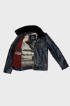The LECLUSE jacket is a jacket that takes up the codes of the flight jacket. With its multiple aged patches in the colors of the Royal Air Force, it also has a removable fur collar, which you can remove for a more classic style or simply when the sun is a little more present.